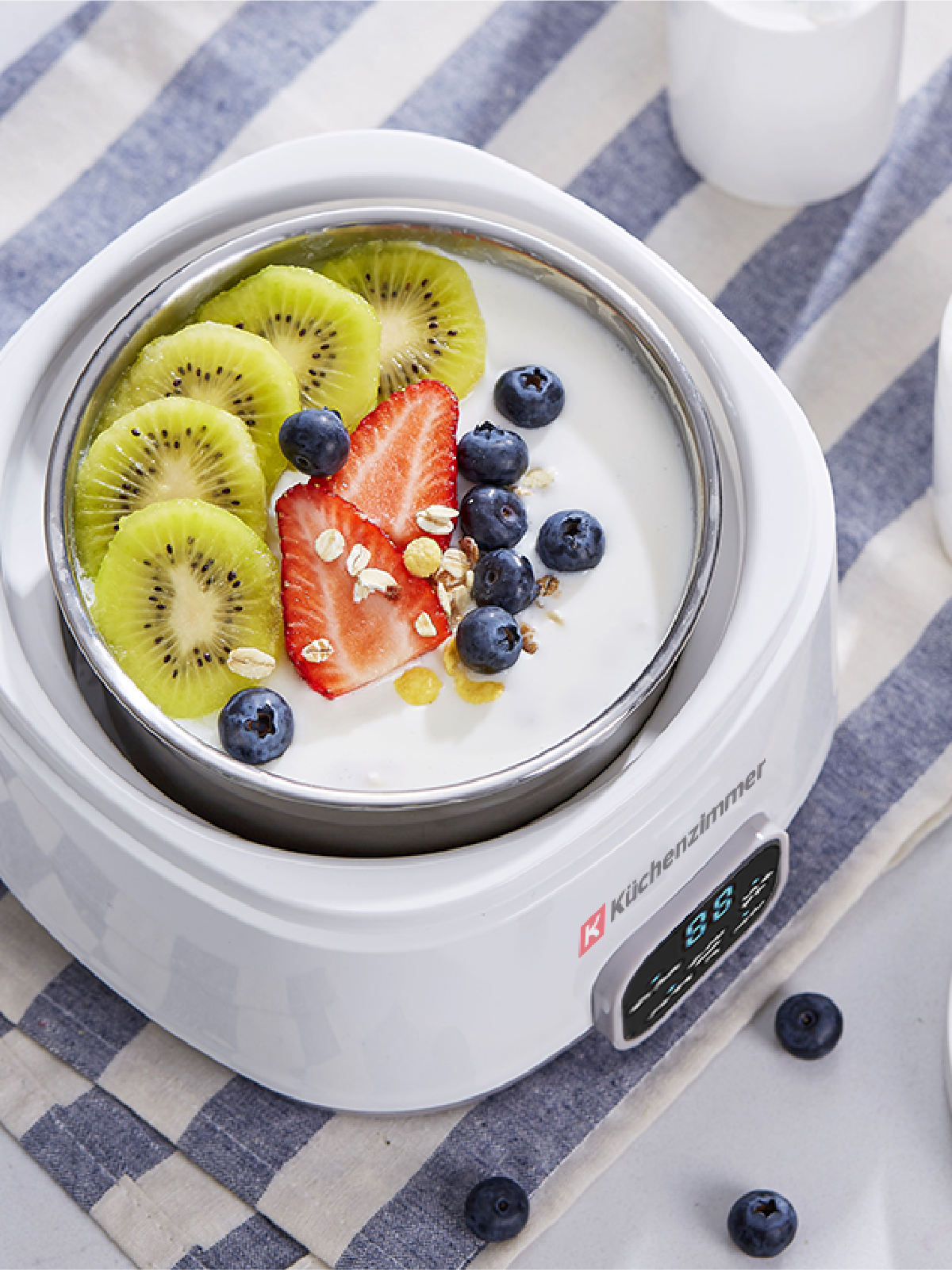 KUCHENZIMMER "Sữa chua tự làm, ngon tuyệt vời!" Điểm nổi bật sản phẩm Đa chức năng: Làm sữa chua, cơm rượu, lên men đậu với độ tiện lợi cao. Dung tích tối ưu: 1L, phù