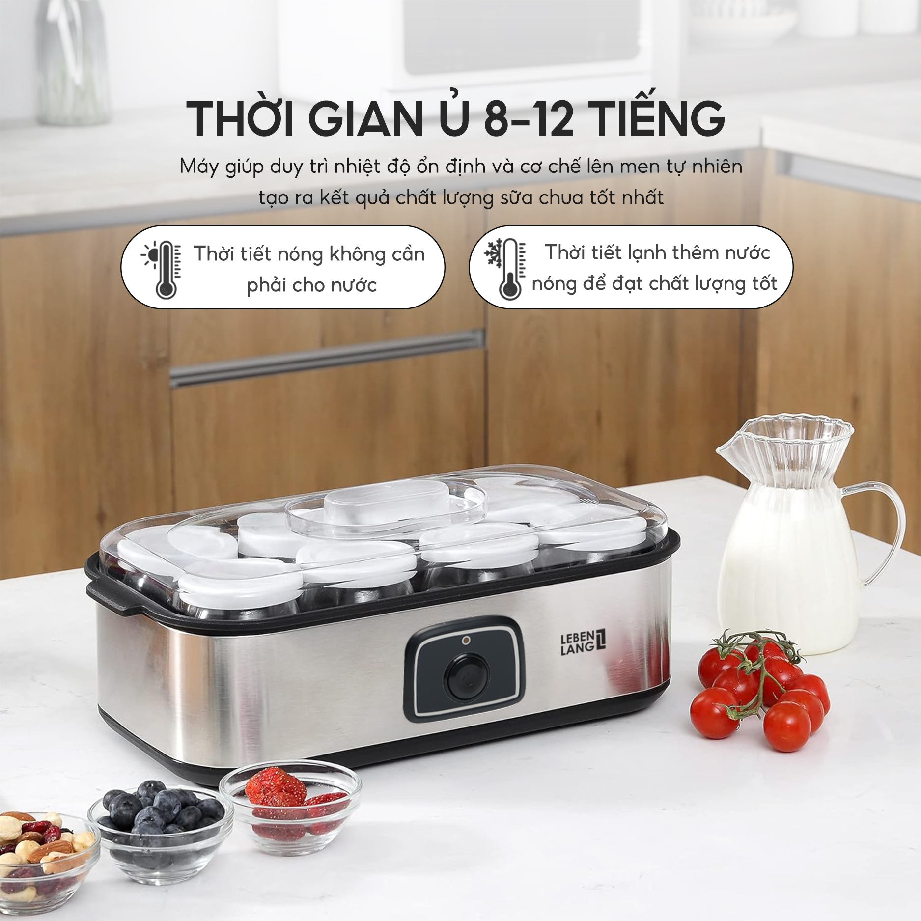 Máy làm sữa chua Lebenlang LBL9139, công suất 20W, dung tích 180ml, gồm 8 lọ thủy tinh, bảo hành 2 năm - hàng chính hãng 6 LÝ DO NÊN CHỌN MÁY LÀM SỮA CHUA CỦA LEBENLANG - Công Suất Tiết Kiệm 20W - Thời Gian ủ từ 8-12 tiếng - Kiểm Soát Nhiệt Độ ổn định