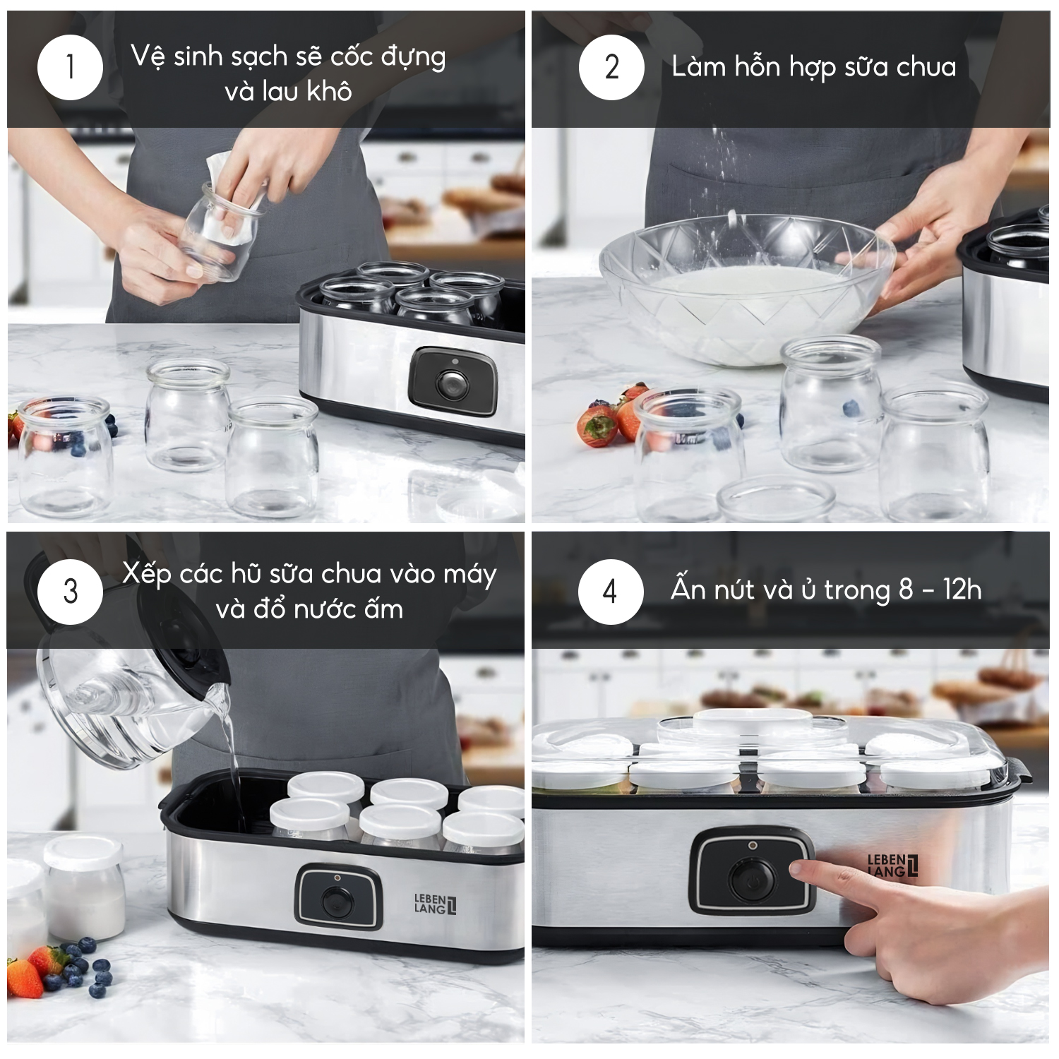 Mua tại TiktokMáy làm sữa chua Lebenlang LBL9139, máy ủ sữa chua công suất 20W, dung tích 180ml, gồm 8 lọ thủy tinh, bảo hành 2 năm - hàng chính hãng 6 LÝ DO NÊN CHỌN MÁY LÀM SỮA CHUA CỦA LEBENLANG