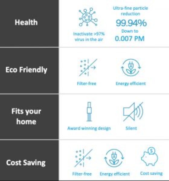 - Tiêu diệt 97% vi rút khi chúng vẫn còn trong không khí: Máy lọc không khí duy nhất đã được khoa học chứng minh là có thể tiêu diệt và ngăn chặn sự lây lan của vi rút trong không khí