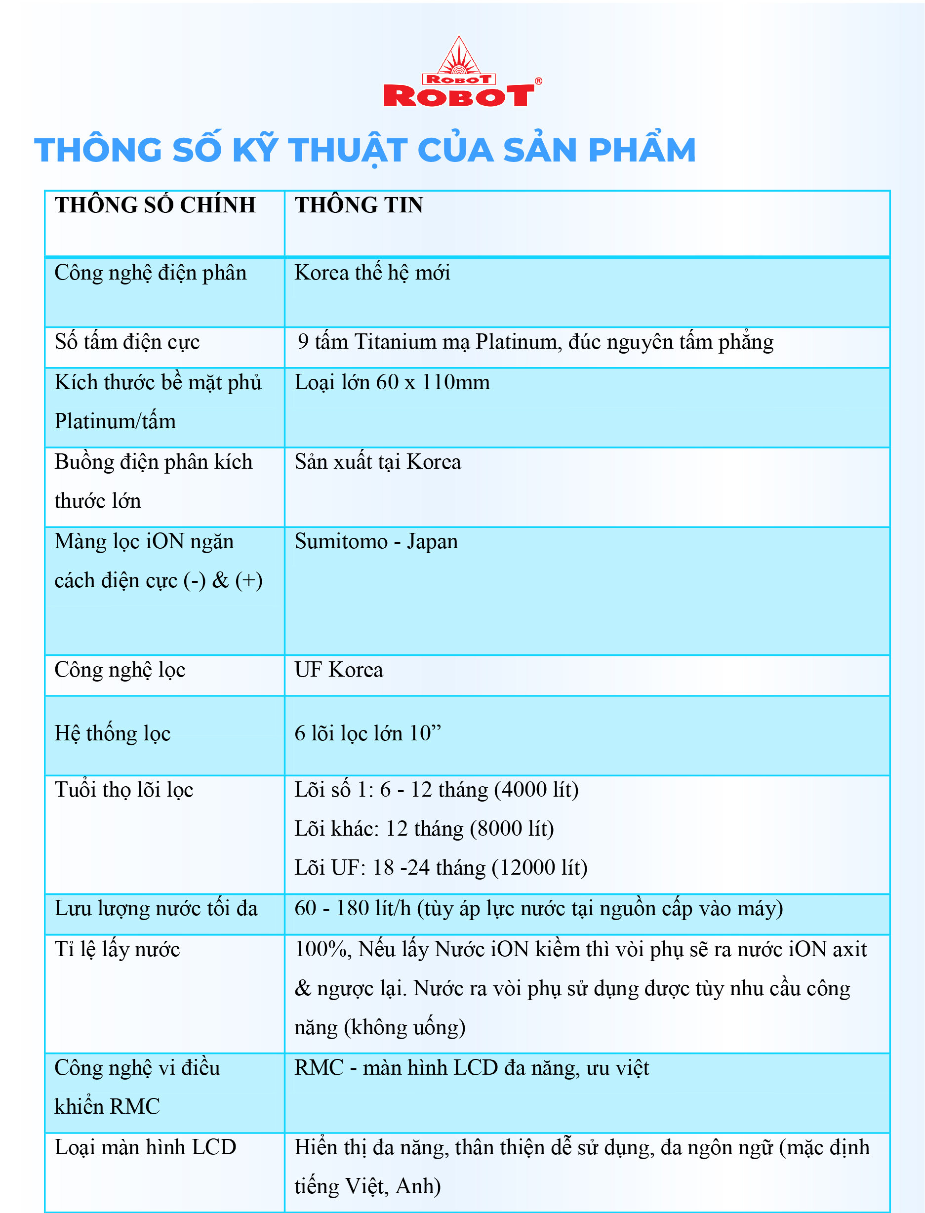 Với mong muốn nhiều gia đình Việt có thể sử dụng nước điện giải iON kiềm với chi phí hợp lý để bảo vệ sức khỏe, sắc đẹp & nâng cao chất lượng cuộc sống, ROBOT mang đến sản phẩm “Chất lượng Quốc tế - Giá thành Việt Nam”, phù hợp với mức sống của nhiều người. Tiết kiệm cho người tiêu dùng đến hơn một nửa chí phí so với máy nhập khẩu chỉ từ 30 – 50%, nhưng sở hữu nhiều ưu điểm, tính năng vượt trội, chất lượng cao.