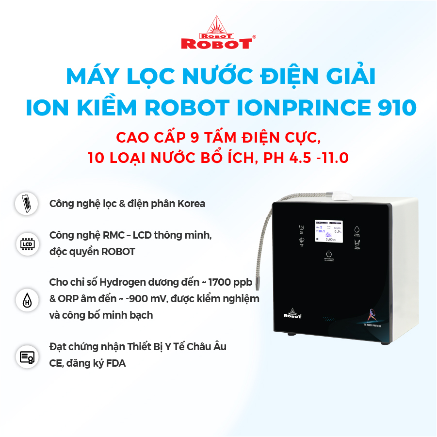 ✨Máy Lọc Nước Điện Giải Ion Kiềm ROBOT IonPrince 910 - Hàng Chính Hãng