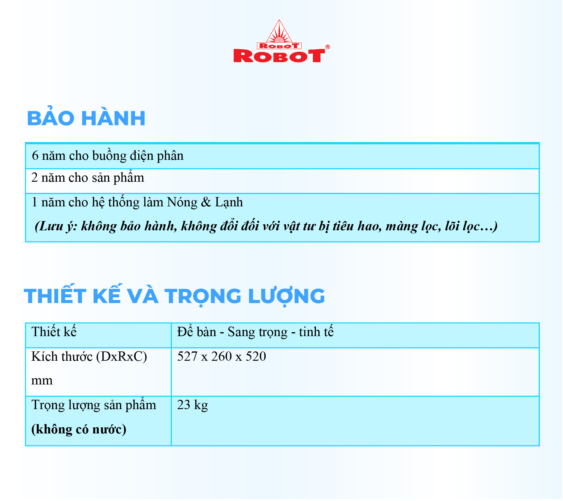 Với mong muốn nhiều gia đình Việt có thể sử dụng nước điện giải iON kiềm với chi phí hợp lý để bảo vệ sức khỏe, sắc đẹp & nâng cao chất lượng cuộc sống, ROBOT mang đến sản phẩm “Chất lượng Quốc tế - Giá thành Việt Nam”, phù hợp với mức sống của nhiều người. Tiết kiệm cho người tiêu dùng đến hơn một nửa chí phí so với máy nhập khẩu chỉ từ 30 – 50%, nhưng sở hữu nhiều ưu điểm, tính năng vượt trội, chất lượng cao.