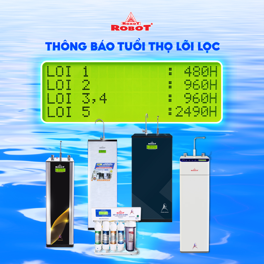 • Công nghệ RMC – LCD độc quyền, biết được chất lượng nước trước & sau lọc     Bộ vi mạch RMC-LCD thông minh thiết kế phát minh của ROBOT, mọi chi tiết vận hành máy được hiển thị trên màn hình LCD, cảnh báo mọi rủi ro cho người sử dụng   Tuổi thọ lõi lọc được tính theo lưu lượng nước sử dụng, không tính theo thời gian ghim điện như các máy thông thường, tiết kiệm tối đa chi phí thay lõi lọc