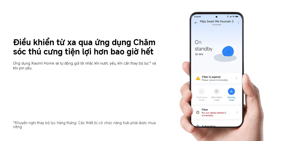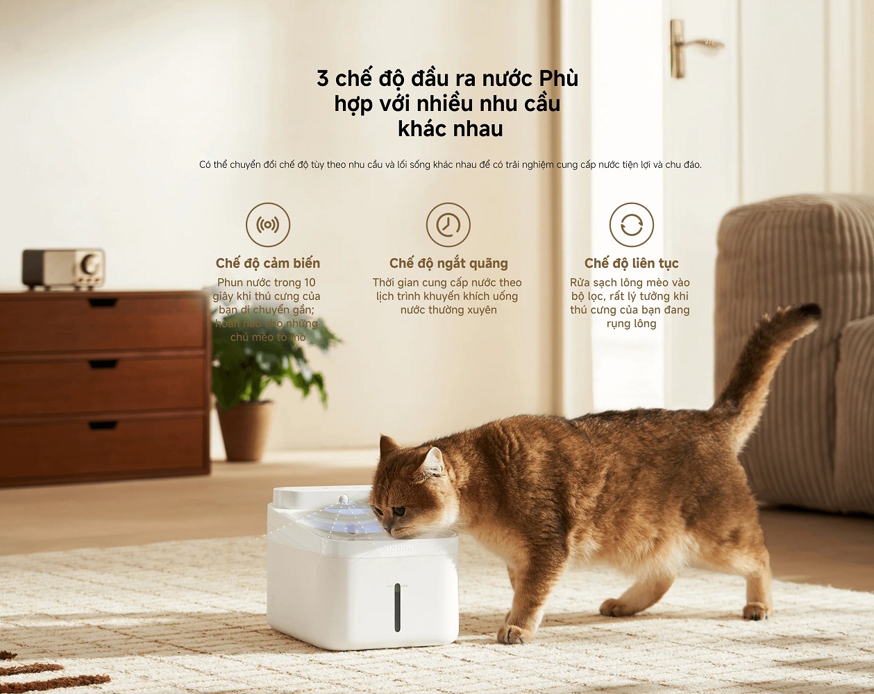Mua tại TiktokDung tích lớn 3L Nạp lại một lần dùng trong 15 ngày Cung cấp đủ nước uống cho một con mèo trưởng thành trong 15 ngày hoặc một tuần cho những hộ gia đình nuôi nhiều mèo*, đảm bảo bạn an tâm khi vắng nhà trong thời gian ngắn. Thiết kế thông minh Dễ dàng tháo rời để vệ sinh thuận tiện Tháo rời trong vài bước đơn giản để vệ sinh hàng tuần dễ dàng. Xô góc tròn lớn với thành bên trong nhẵn giúp ngăn ngừa bụi bẩn tích tụ. Hoạt động êm ái Tận hưởng giấc ngủ yên bình Có thiết kế cung cấp nước không gây tiếng ồn, nước chảy dọc theo mép đài phun nước nên bạn có thể đặt trong phòng ngủ mà không lo tiếng ồn làm ảnh hưởng đến giấc ngủ của mình.