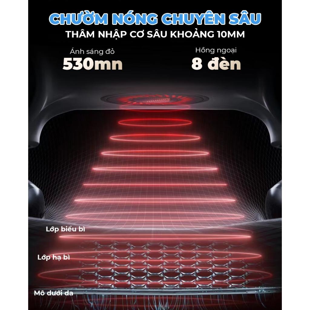 Khả năng tạo nhiệt độ giúp cơ bắp thư giãn và tăng cường hiệu quả mát-xa. Ánh sáng đỏ hồng ngoại được sử dụng để thâm nhập sâu vào cơ bắp, tạo hiệu ứng nhiệt, làm thư giãn từ bên trong ra ngoài.