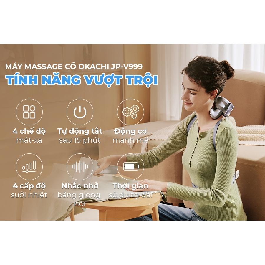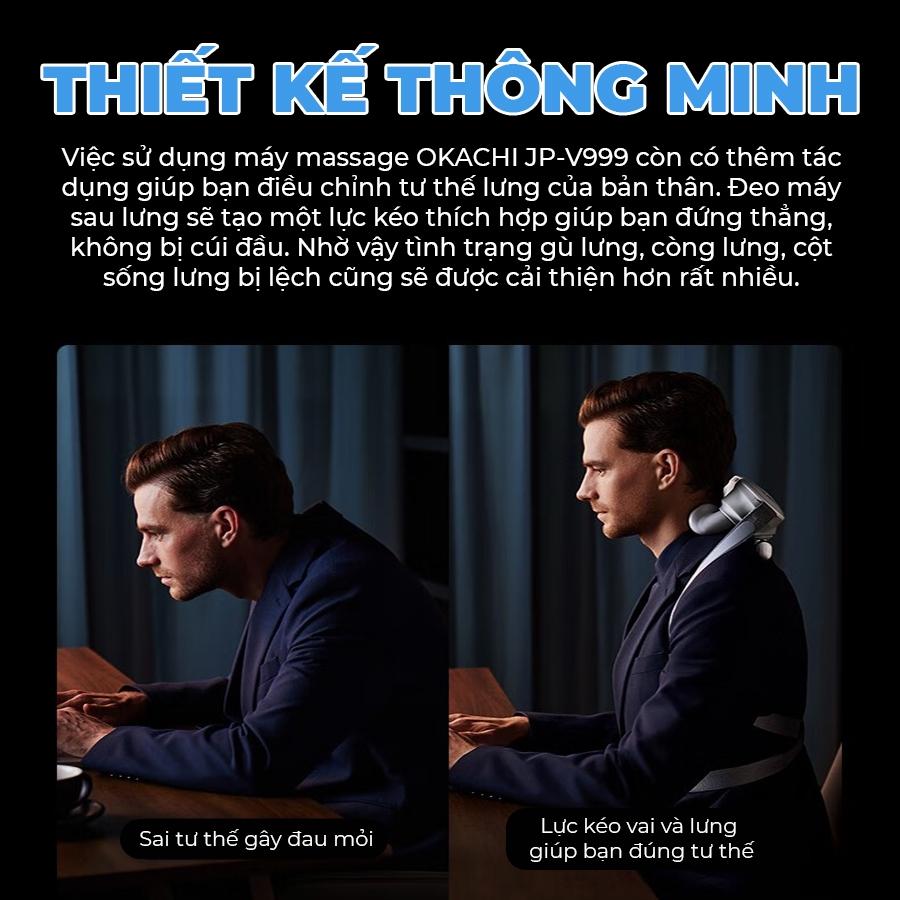 OKACHI JP-V999 chuyên mátxa cho vùng vai, cổ, và gáy, giúp giảm đau và căng thẳng trong những vùng này một cách hiệu quả.