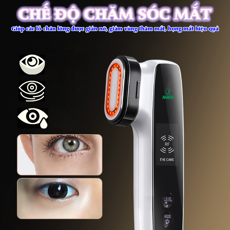 Chế độ chăm sóc mắt của máy nâng cơ mặt Nikio NK-128 giúp cho khả năng hấp thụ dưỡng chất và tăng cường thẩm thấu. Ngoài ra, máy massage mặt còn giúp các lỗ chân lông được giãn nỡ, giảm vùng thâm mắt, bọng mắt rất hiệu quả.