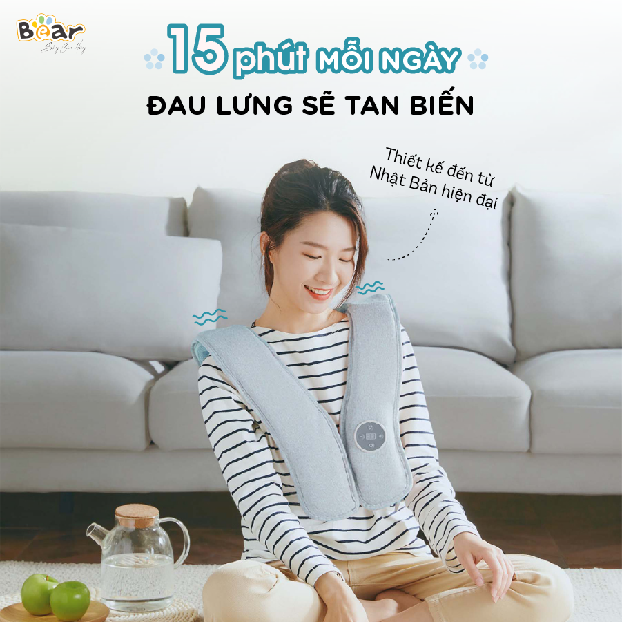 Máy đấm lưng Bear AMQ-A01X1 (MA-B01V1) thiết kế dạng đai cân bằng thông minh, sử dụng công nghệ Nhật Bản mô phỏng chân thật nhất phương pháp đấm massage như tay người giúp bạn thư