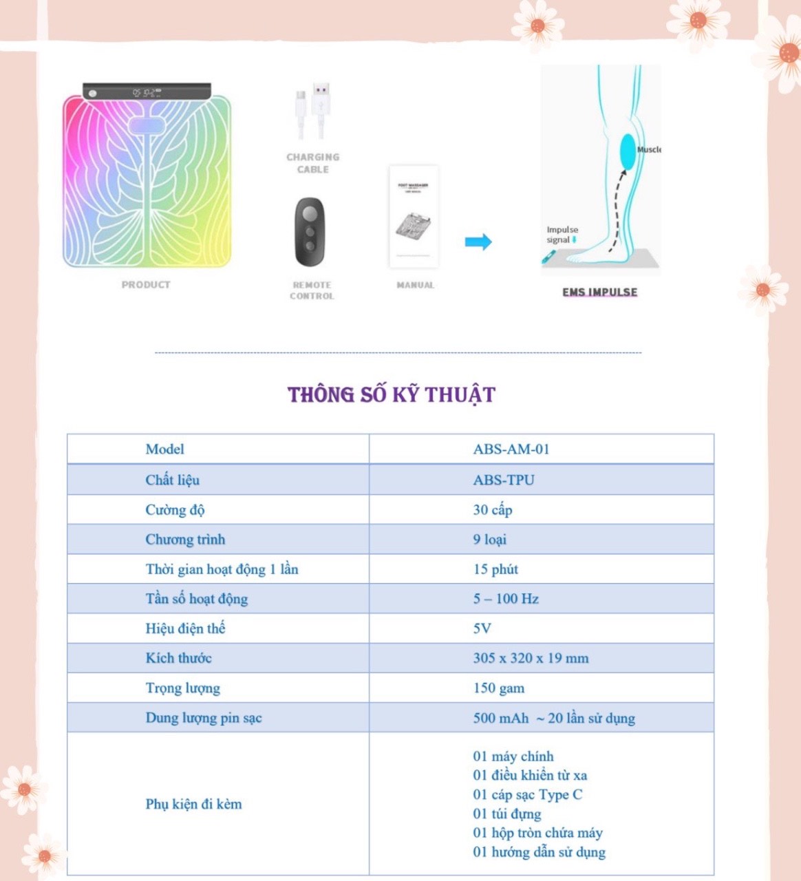 THÔNG SỐ KỸ THUẬT MÔ TẢ : THÔNG SỐ KỸ THUẬT Model : aYosun JENU – T699 Thời gian : 10-20-30 phút Con lăn : Đầu gối Chế độ Massage : 6 Mức Chế độ