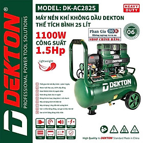THÔNG SỐ KỸ THUẬT: Máy Nén Khí Giảm Âm Không Dầu 2.0HP / DK-AC3930 / Thể Tích 30L + Thương hiệu: DEKTON + Điện Áp :220v/50Hz + Công Suất 2.0Hp / 1500W + Tốc Motor