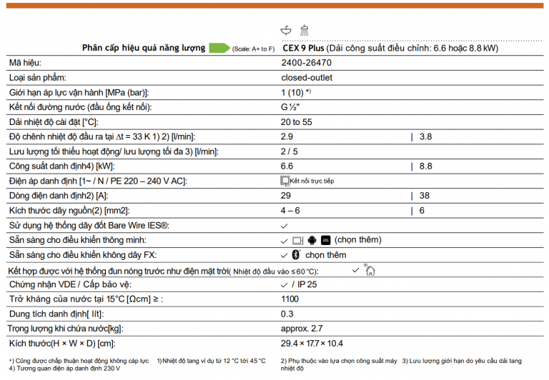 Nhiệt độ nước đầu ra được kiểm soát hoàn toàn là yếu tố tiên quyết để ngăn chặn các phản ứng hóa học tạo cặn canxi bên trong đường ống dẫn, từ đó tăng độ bền cho thiết bị. Máy làm nước nóng tức thì CEX 9 PLUS kiểm soát nhiệt độ không vượt quá 55°C giúp xử lý triệt để tình trạng đóng cặn canxi này.