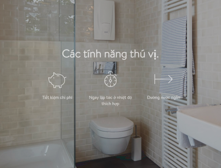 Bình nước nóng trực tiếp duy nhất trên thị trường lắp trong tủ bếp, dưới kệ bếp rất gọn, không nhỏ nước vanTrang bị chống giật RCD được chứng nhận bởi TUV Rheinland và CQC,