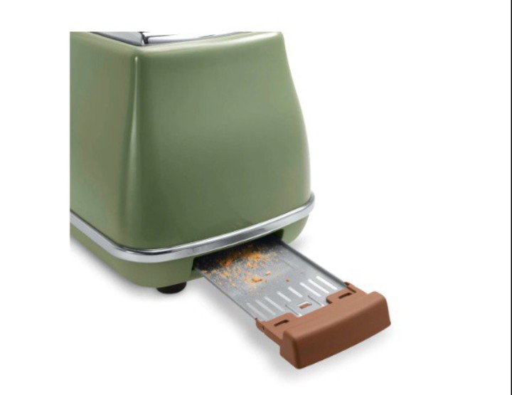 Mô Tả Sản Phẩm Máy nướng bánh mì Delonghi CTOV2103.GR thiết kế cổ điển với màu xanh rêu thu hút ánh nhìn, không chỉ nướng bánh mì mà còn rã đông, hâm nóng bánh, dễ