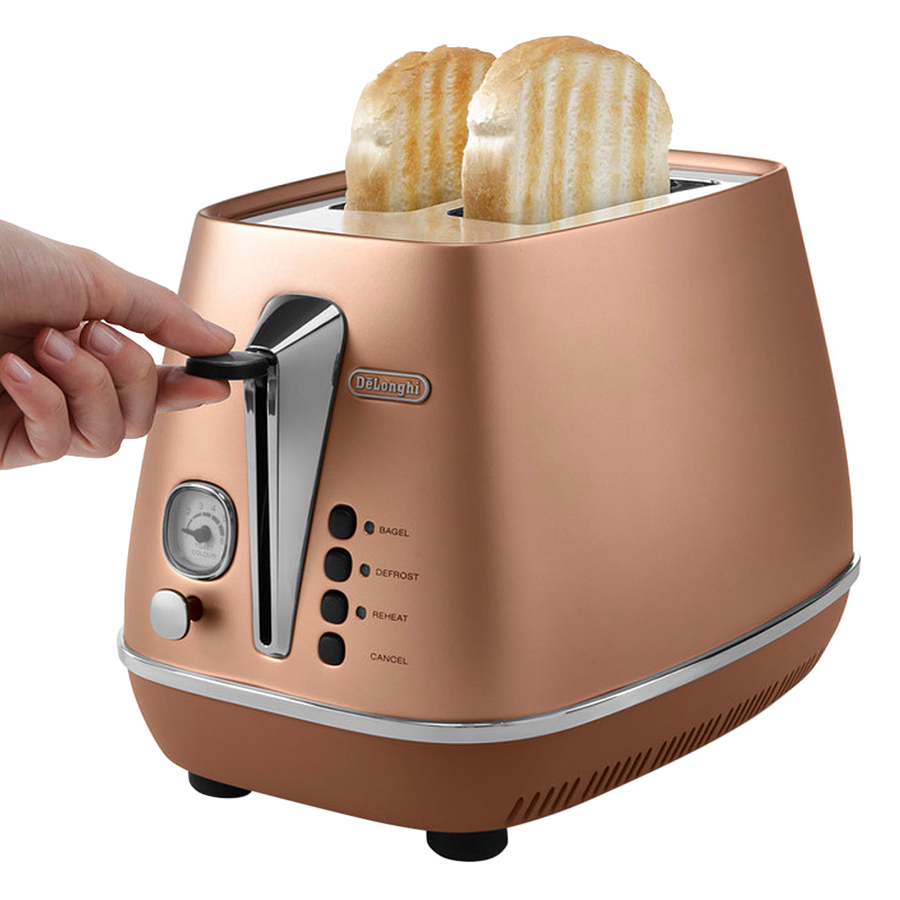 Máy Nướng Bánh Mì Distinta Delonghi CTI 2103.CP có thiết kế hiện đại, kiểu dáng đẹp mắt với nhiều cải tiến mới và được làm bằng chất liệu kim loại mạ crom có màu sắc hài hòa sáng bóng, góp phần tô điểm cho không gian bếp nhà bạn thêm phần sang trọng và tiện nghi.