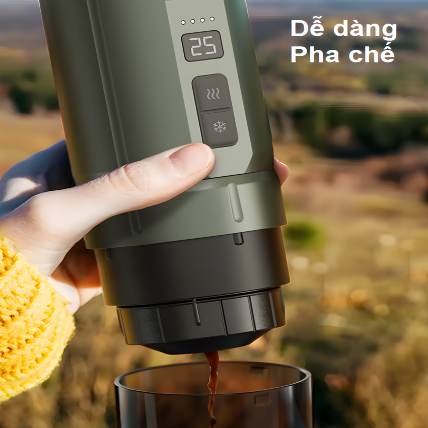- Pha cà phê Nóng không cần cắm nguồn, sử dụng pin để pha chế