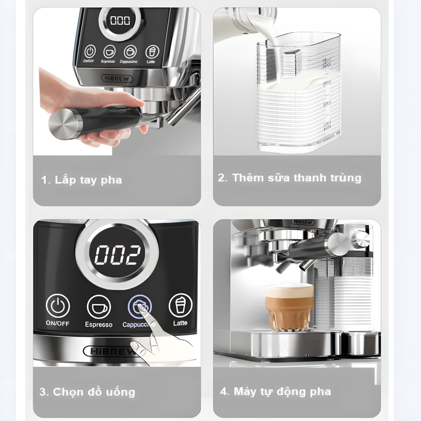 ✨Máy pha cà phê Espresso bán tự động Espresso, Latte, Cappuccino thương hiệu HiBREW H13A - Hàng Chính Hãng