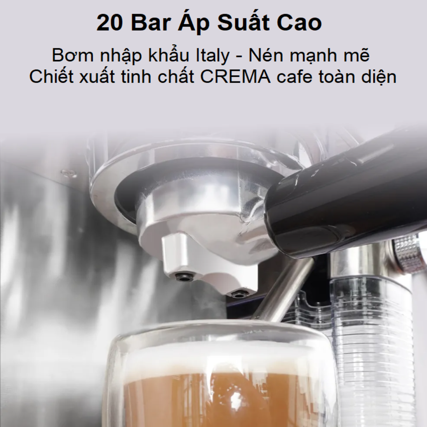 Thưởng thức hương vị Cafe đậm chất Ý  Hệ thống chống nhỏ giọt giúp tránh việc lãng phí cũng như giữ vệ sinh cho máy trước trong và sau quá trình máy pha chế  Bảng