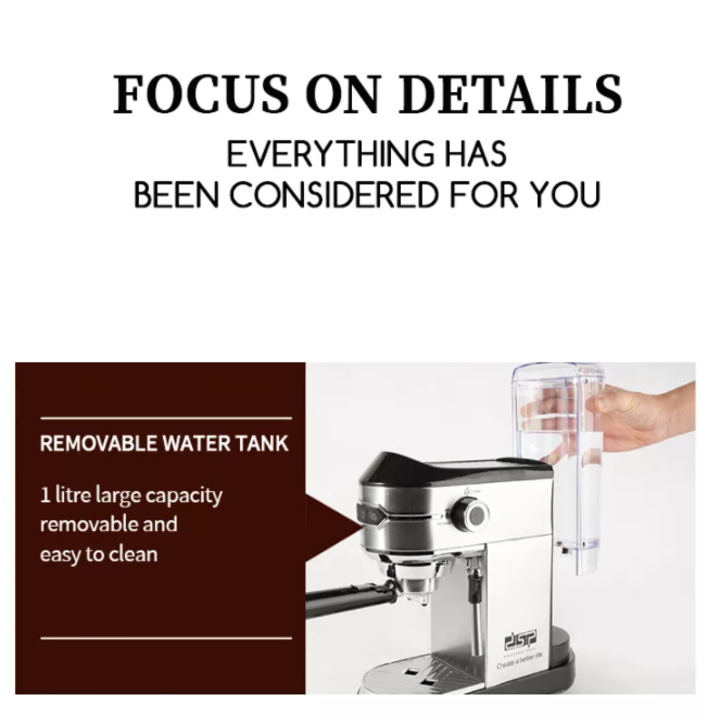 ✨Máy pha cà phê Espresso nhãn hiệu DSP KA3065 - Áp suất 15 bar, có công suất hoạt động mạnh mẽ lên đến 1450W - HÀNG NHẬP KHẨU