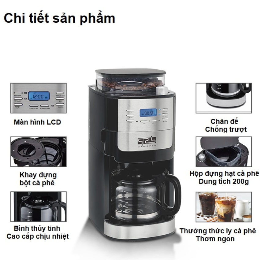 - Chức năng hẹn giờ pha cà phê, thức dậy với ly cà phê nóng. - Có chức năng chống nhỏ giọt khi máy bị ngừng đột ngột khi đang pha cafe vì bạn kéo bình đựng cafe ra, dòng cafe chảy ra sẽ ngừng ngay lập tức.