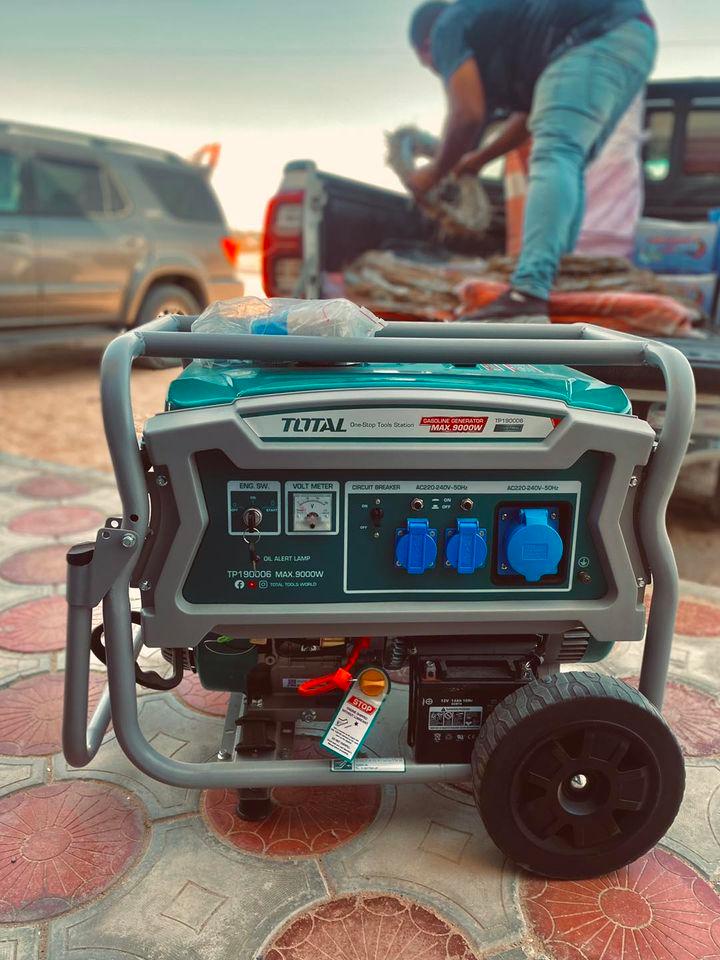 Thông số kĩ thuật -Mã sản phẩm: TP190006 -Nhà sản xuất: Total -Điện áp định mức : 220-240V. -Tần số định mức : 50Hz -Công suất tối đa : 9.0kW -Công suất định mức: 7,5kW -Tốc độ định mức : 3000rpm -Động cơ: 4 thì, OHV -Dung tích xi lanh :457mL -Hệ thống làm mát: Bằng không khí -Hệ thống đánh lửa: T.C.I -Hệ thống khởi động: Giật nổ + đề điện. -Mô tơ Dây đồng. -Bình ắc quy 12V/14ah -Bình nhiên liệu : 25L. -Trọng lượng máy khô: 95 kg. -Phụ kiện Kèm 1 bộ tay cầm phụ và bánh xe. Đóng gói trong thùng carton -Bảo hành: 6 tháng