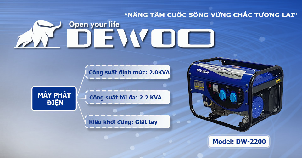 Tính năng nổi bật của máy phát điện chạy xăng DEWOO DW-2200 Máy phát điện là công cụ hỗ trợ đắc lực khi có sự cố mất điện, giúp sinh hoạt, công việc không bị gián
