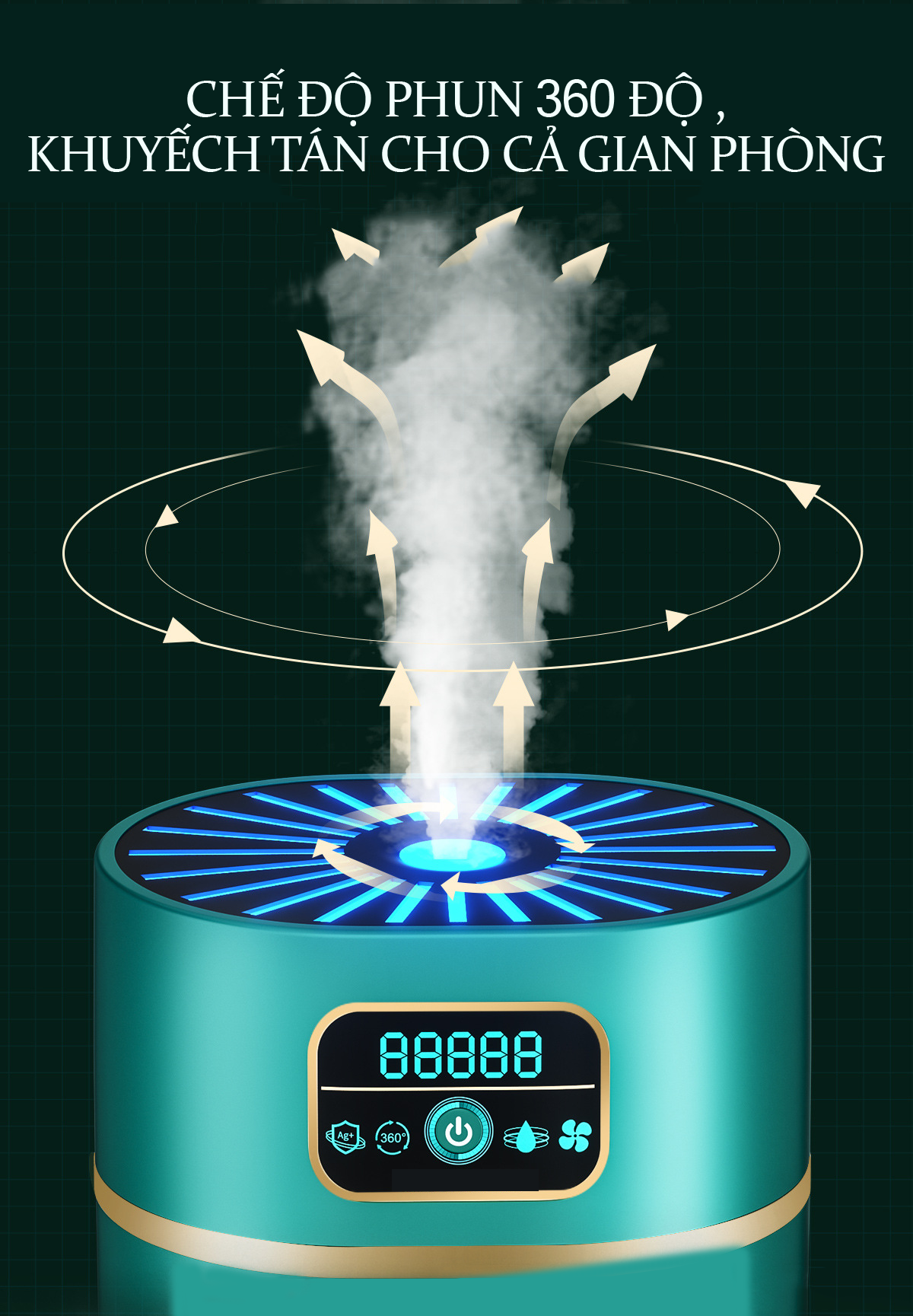 - Máy phun sương tạo ẩm không khí teement còn có tách dụng khuyếch tán tinh dầu giúp bạn loại bỏ những vi khuẩn gây mùI và vi khuẩn có hại cho bạn và những người thân yêu trong gia đình bạ
