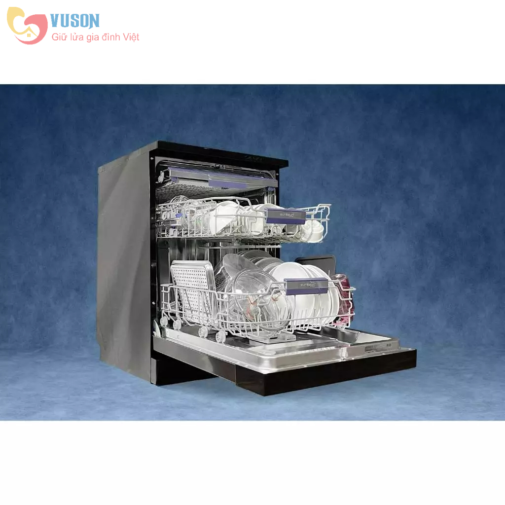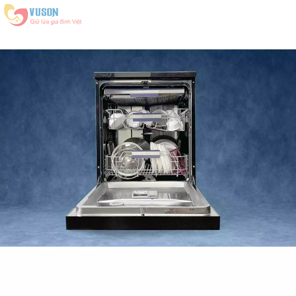 • Máy rửa chén độc lập • Thân inox màu đen cao cấp • 3 dàn rửa tiện lợi • Sức chứa 17 bộ đồ ăn Châu Âu • 8 Chương trình rửa tích hợp