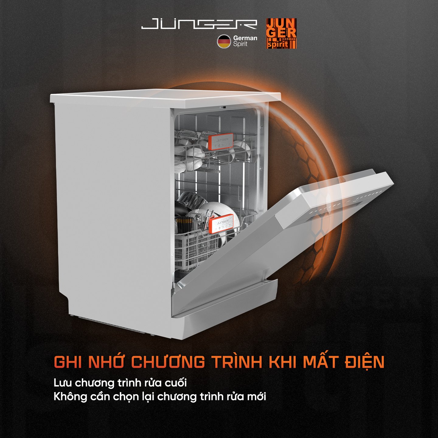 - ĐẶC ĐIỂM NỔI BẬT Không chỉ kế thừa tinh hoa của những dòng máy rửa bát truyền thống, Junger DWJ-140 cải tiến mạnh mẽ bằng việc ứng dụng công nghệ hiện đại như ghi nhớ chương trình khi mất điện, báo hết muối và chất trợ rửa, chống tràn rò rỉ nước, khóa trẻ em bảo vệ an toàn,... hứa hẹn trở thành người trợ lý tuyệt vời cho căn bếp của bạn.