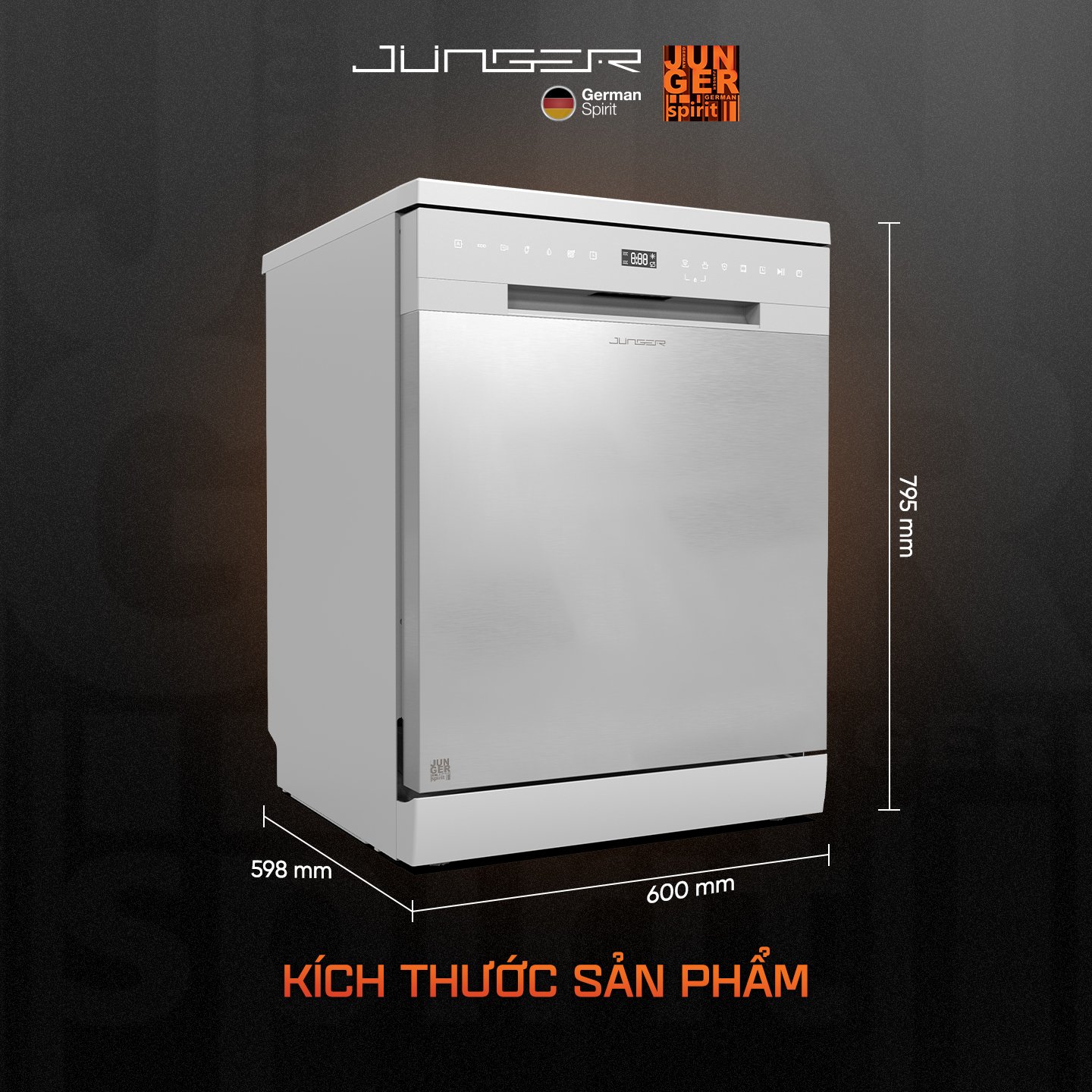 ✨Máy rửa bát Junger DWJ-140 Dung tích 14 bộ Sấy khô Khử mùi UV Hàng Chính Hãng Bảo Hành 24 Tháng