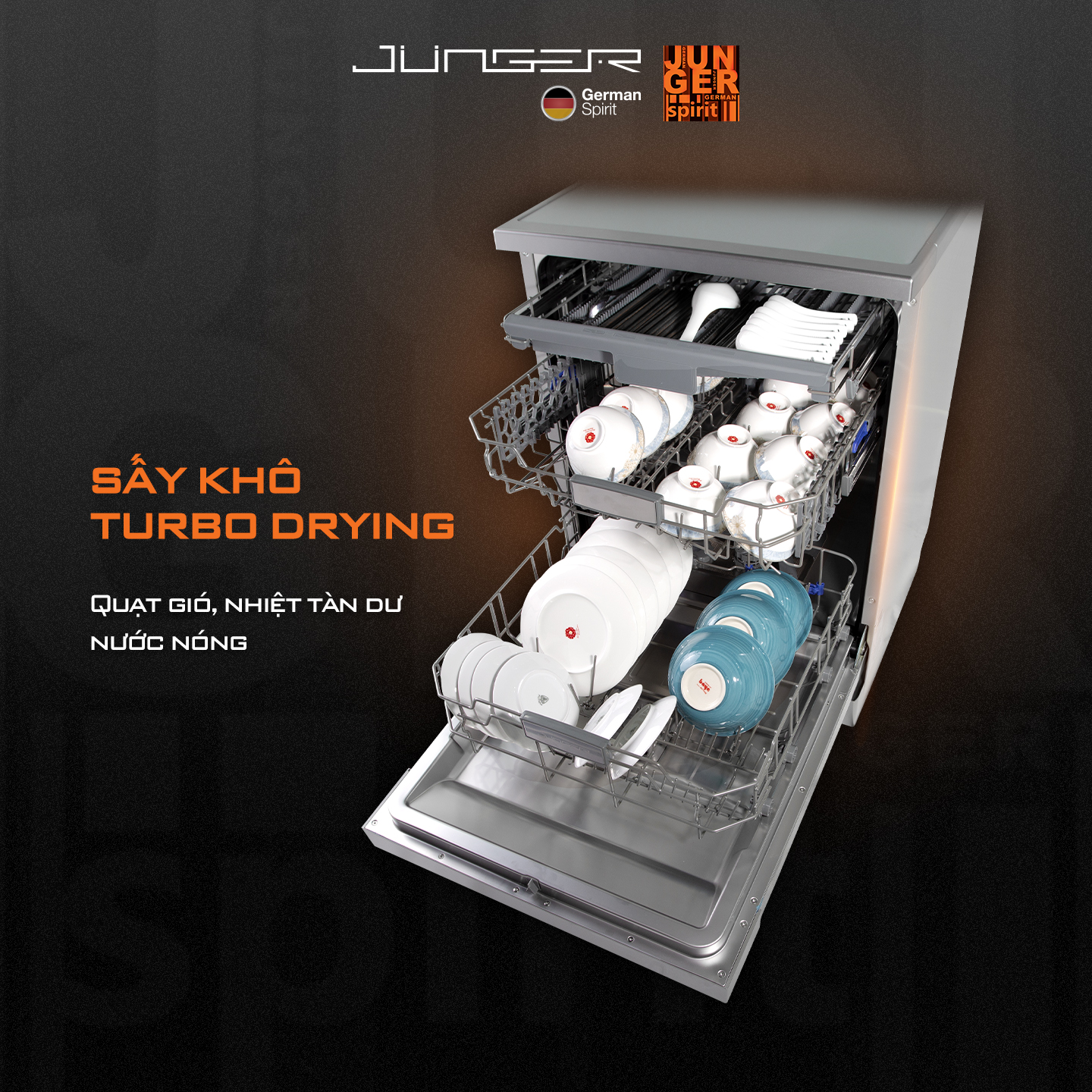 Junger DWJ-450 sử dụng lượng nhiệt được sinh ra từ thanh gia nhiệt trong quá trình rửa giúp làm khô tăng cường cho toàn bộ bát đĩa tốt hơn. Với công nghệ tái tạo năng lượng giúp máy rửa bát Junger tiết kiệm điện năng hiệu quả. Đồng thời, tính năng này giúp bát đĩa luôn khô thoáng, loại bỏ vi khuẩn hiệu quả, đảm bảo an toàn cho sức khỏe người dùng.