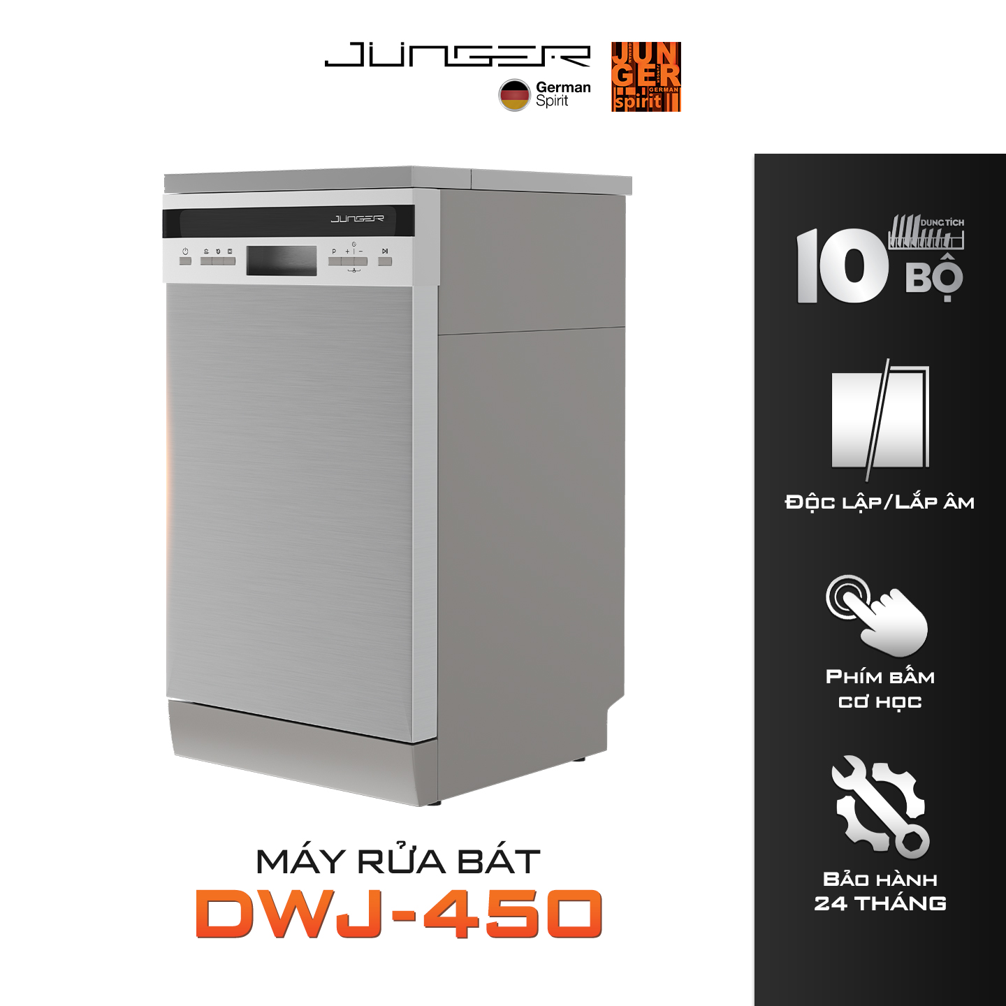 Máy rửa bát Junger DWJ-450 là sản phẩm mới ra mắt của thương hiệu tiện ích đẳng cấp Junger. Phát triển ưu thế dẫn đầu về công nghệ, Junger DWJ-450 không chỉ làm sạch bát đĩa hiệu quả mà còn tiết kiệm thời gian và công sức dọn dẹp của chị em nội trợ trong gia đình.