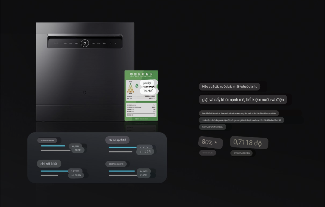 Mua tại TiktokSau thanh công của máy rửa bát xiaomi mijia S1 15 bộ , Xiaomi đã ra mắt Máy rửa bát thông minh Mijia S1 12 bộ. Cánh cửa thông minh có thể tự động đóng mở; cửa sẽ mở ra để đẩy nhanh quá trình làm khô và sau đó đóng lại để bảo vệ bát đĩa sạch khỏi bụi và phấn hoa. Máy rửa bát thông minh có chu trình làm khô bằng không khí nóng, làm khô đĩa bát bằng không khí nóng ở 80 ° C (~ 176 ° F). Xiaomi tuyên bố rằng không khí nóng và cửa tự động mở giúp làm khô bát đĩa của bạn nhanh hơn 40% so với máy rửa bát thông thường. Thêm vào đó, sấy khô bằng không khí nóng ở 72 ° C (~ 162 ° F) mang lại tỷ lệ khử trùng 99,99%. Các Cảm biến và công nghệ AI sẽ phát hiện mức độ bẩn trên bát đĩa trong 10 giây. Điều này cho phép Máy rửa bát đĩa thông minh Mijia S1 chọn chương trình rửa tối ưu một cách thông minh, điều chỉnh thời gian chu trình khi cần thiết. Ngoài ra, bạn có thể chọn chế độ rửa với các cài đặt thời gian, nhiệt độ và cường độ khác nhau. Bạn có thể chọn chế độ của mình trên màn hình điều khiển hoặc thông qua ứng dụng Mihome , điều khiển thiết bị bằng giọng nói. Máy rửa bát Mijia 12 bộ S1 có kích thước 595 x 600 x 525 mm với không gian chứa lớn. 27 tia phun cung cấp công suất lên đến 45.000 Pa để làm sạch hoàn toàn và động cơ biến tần BLDC giảm thiểu tiếng ồn do máy tạo ra.