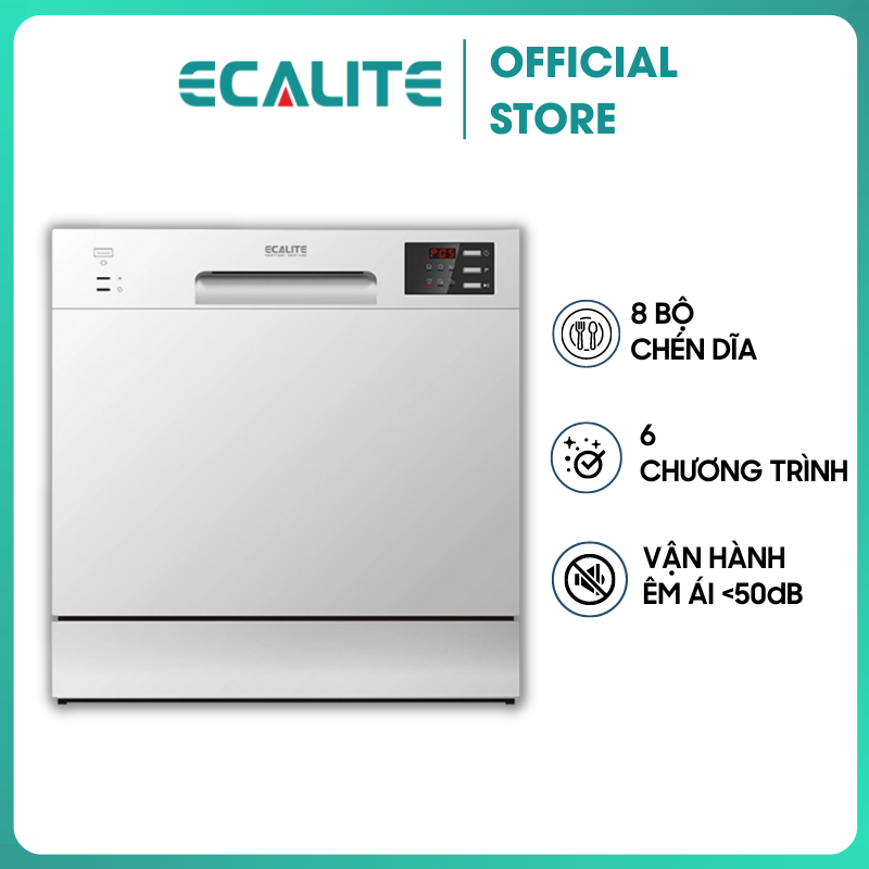 ✨Máy Rửa Chén Ecalite EDW-SMS6080WH (Trắng) - 8 Bộ - 6 Chương Trình Rửa - Hàng Chính Hãng