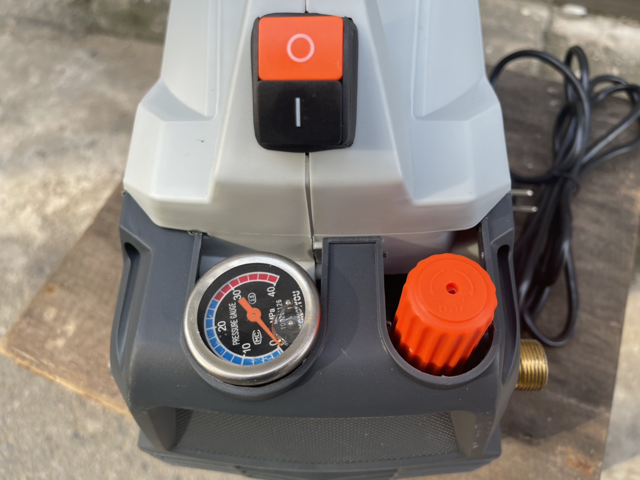 - Máy Rửa Xe MAX MC915 2200W Chỉnh Áp Cút nối đầu ra và vào được làm bằng kim loại.