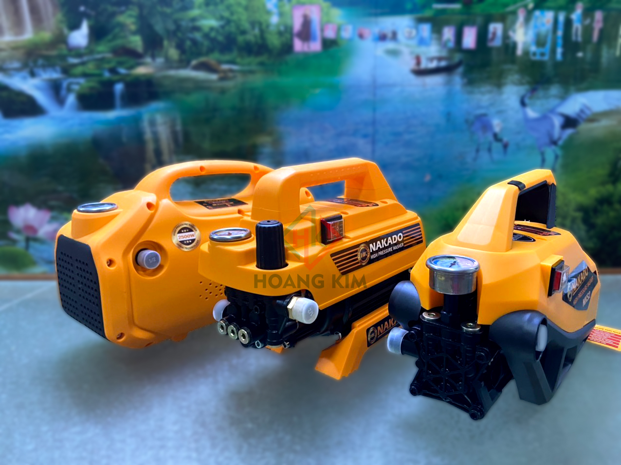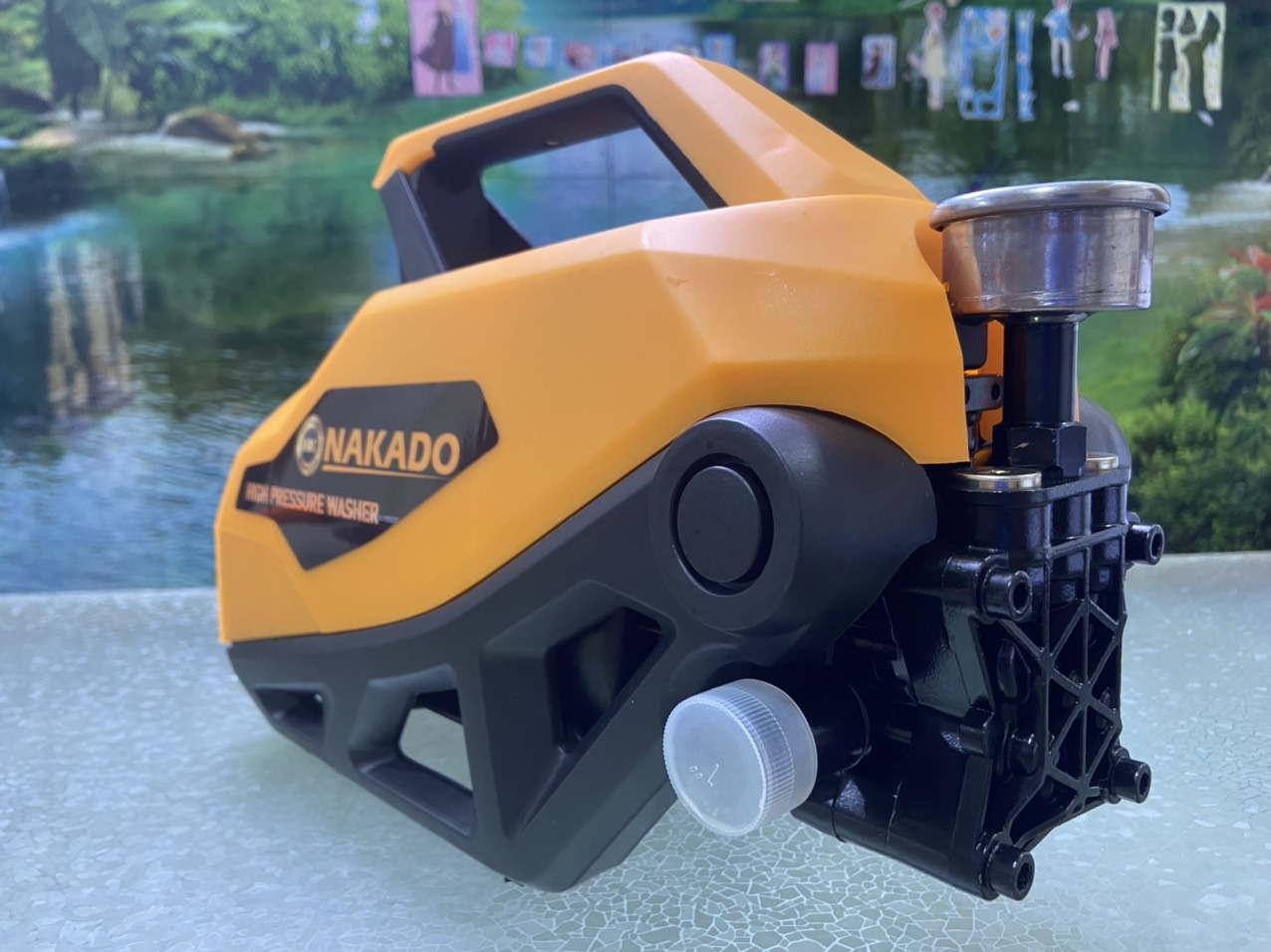 MÁY RỬA XE NAKADO 2500W 100% DÂY ĐỒNG được sản xuất theo công nghệ Nhật Bản, máy có thiết kế gọn nhẹ, đẹp mắt, dễ dàng cầm, xách đi mọi nơi. Máy được trang bị mô tơ lõi đồng cảm ứng từ chạy êm, ít ồn, bền hơn các loại chổi than cũ, máy rửa xe tự động, khi không bóp máy sẽ dừng hoạt động. Máy rửa xe gia đình mini phù hợp rửa xe, rửa sân, kho bãi, rửa máy lạnh….