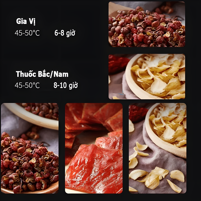 Loại máy: Máy sấy gia đình Có thể sấy được nhiều loại rau củ quả và các loại thực phẩm khác Công suất: 800W Số khay sấy: 10 khay Kích thước khay sấy: 30 x