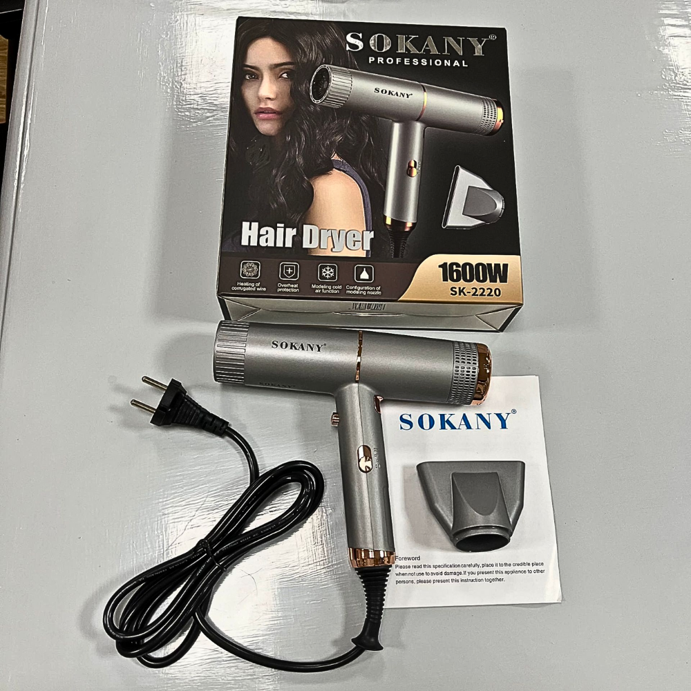 Máy sấy tóc 2 chiều nóng lạnh SOKANY công suất 1600W, tạo ion chăm sóc tóc, tạo kiểu, SK-2220 - HÀNG CHÍNH HÃNG CAM KẾT ĐỔI MỚI TẠI NHÀ TRONG VÒNG 15 NGÀY, BẢO