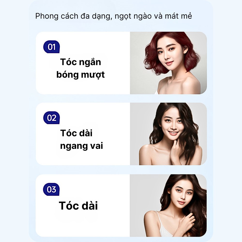 • Bước 3: Sấy tóc. Khi sử dụng, để máy sấy cách tóc ít nhất 3cm để tránh quá nhiệt và hư tổn tóc.