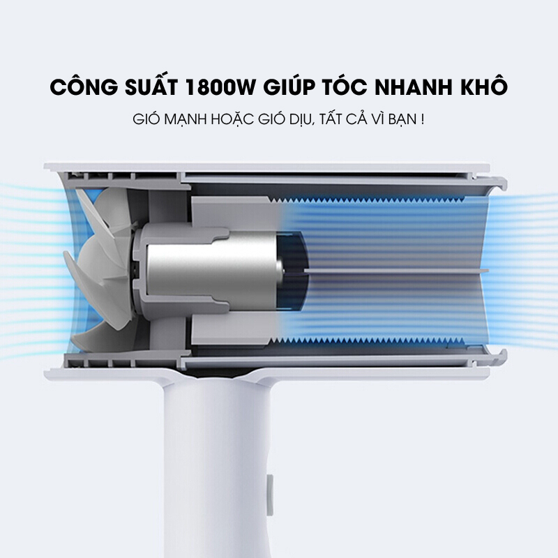 Động cơ không chổi than tốc độ cao 110.000 rpm, tốc độ gió 65m/s, làm khô tóc ngắn chỉ trong 40 giây Cảm biến kiểm soát nhiệt thông minh NTC, kiểm soát nhiệt độ 100