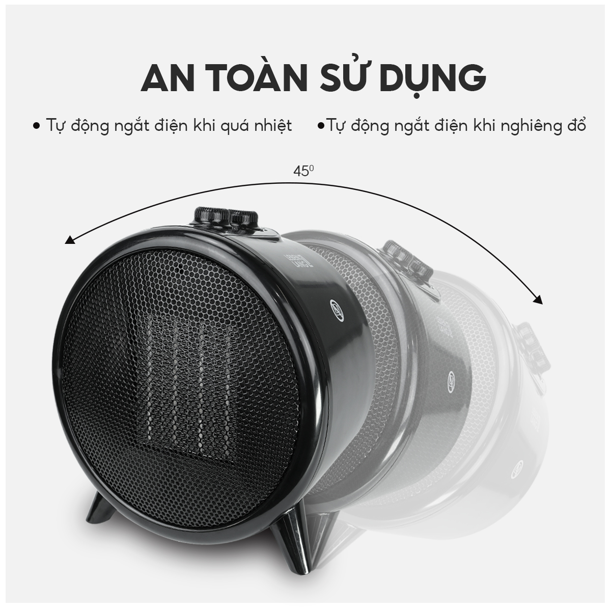 Máy sưởi LBL0275 an toàn tuyệt đối: Máy sưởi tự động ngắt khi quá nhiệt hoặc nghiêng đổ, giúp bảo vệ bạn và gia đình khỏi nguy cơ cháy nổ.