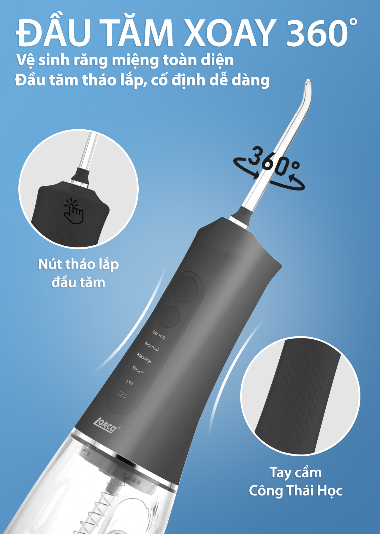 ✨Máy Tăm Nước Cầm Tay Chính Hãng Lorca TA 9109WT Vệ Sinh Răng Miệng, Bộ 5 Đầu Tăm, 5 Chế Độ Sử Dụng