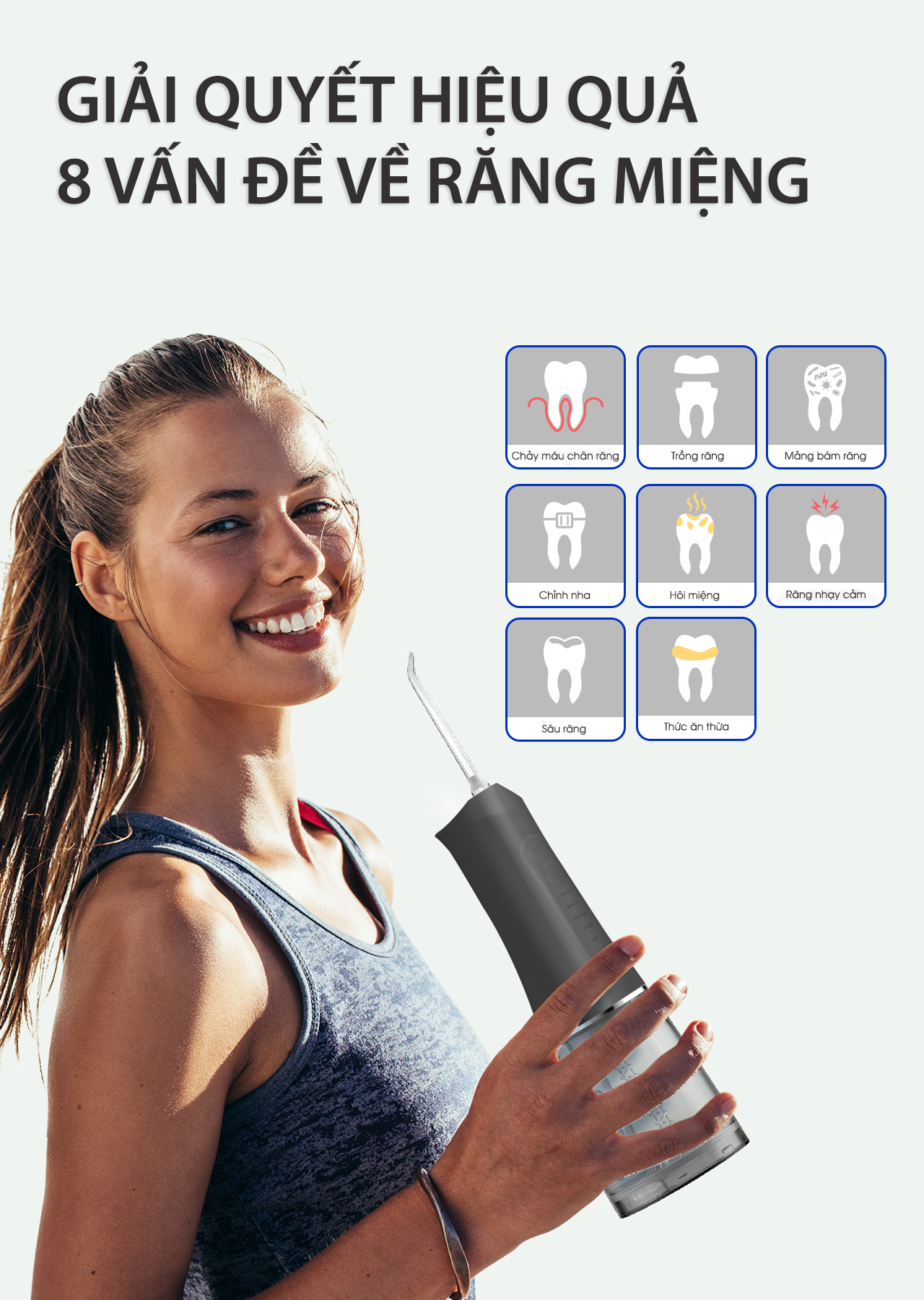 TẠI SAO PHẢI SỬ DỤNG MÁY TĂM NƯỚC? Răng xích, răng giả, răng thưa răng bọc sứ và cao răng là nguyên nhân chính gây viêm lợi và hôi miệng. Việc vệ sinh răng đòi