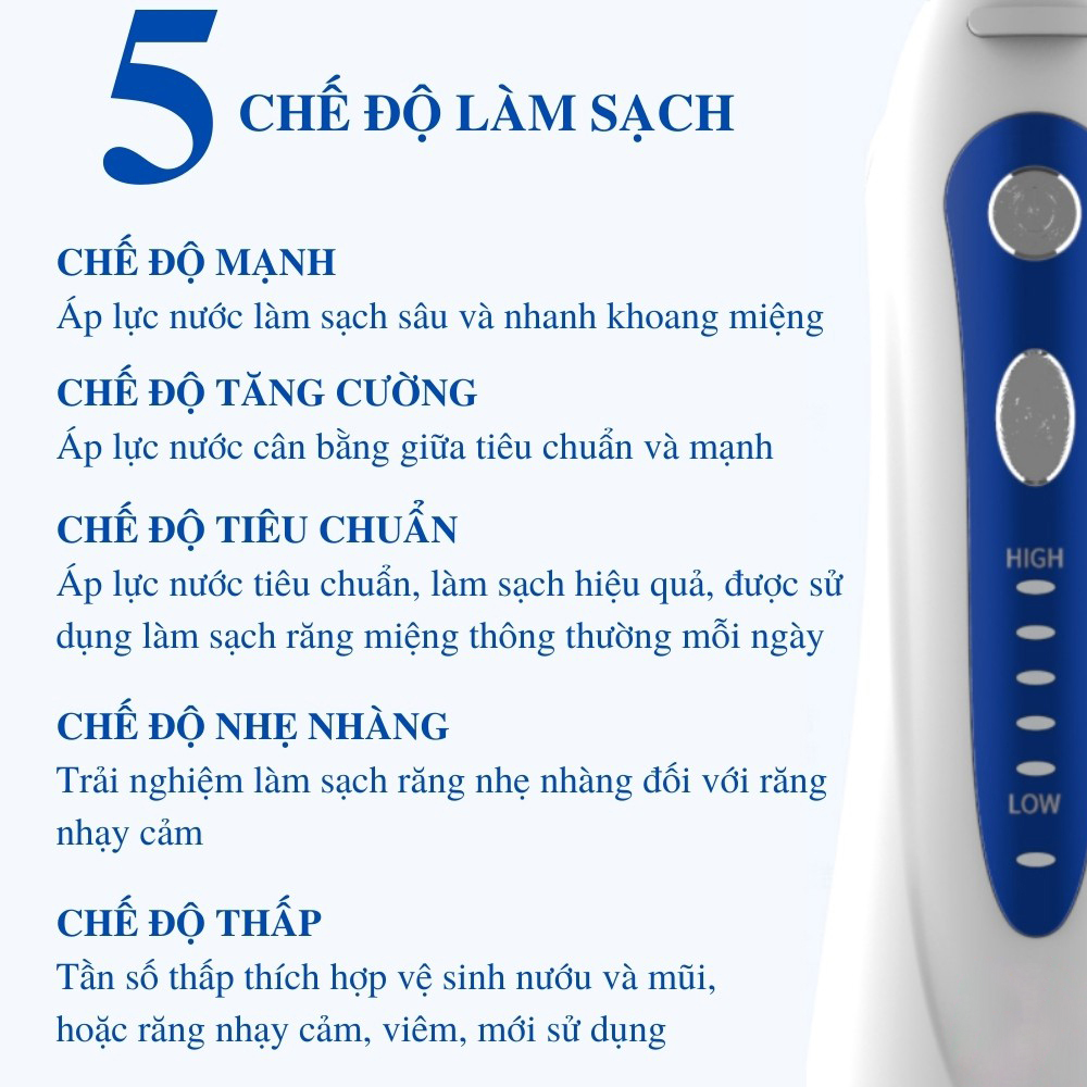 Công nghệ tia nước siêu âm, 5 chế độ làm sạch, áp lực nước mạnh