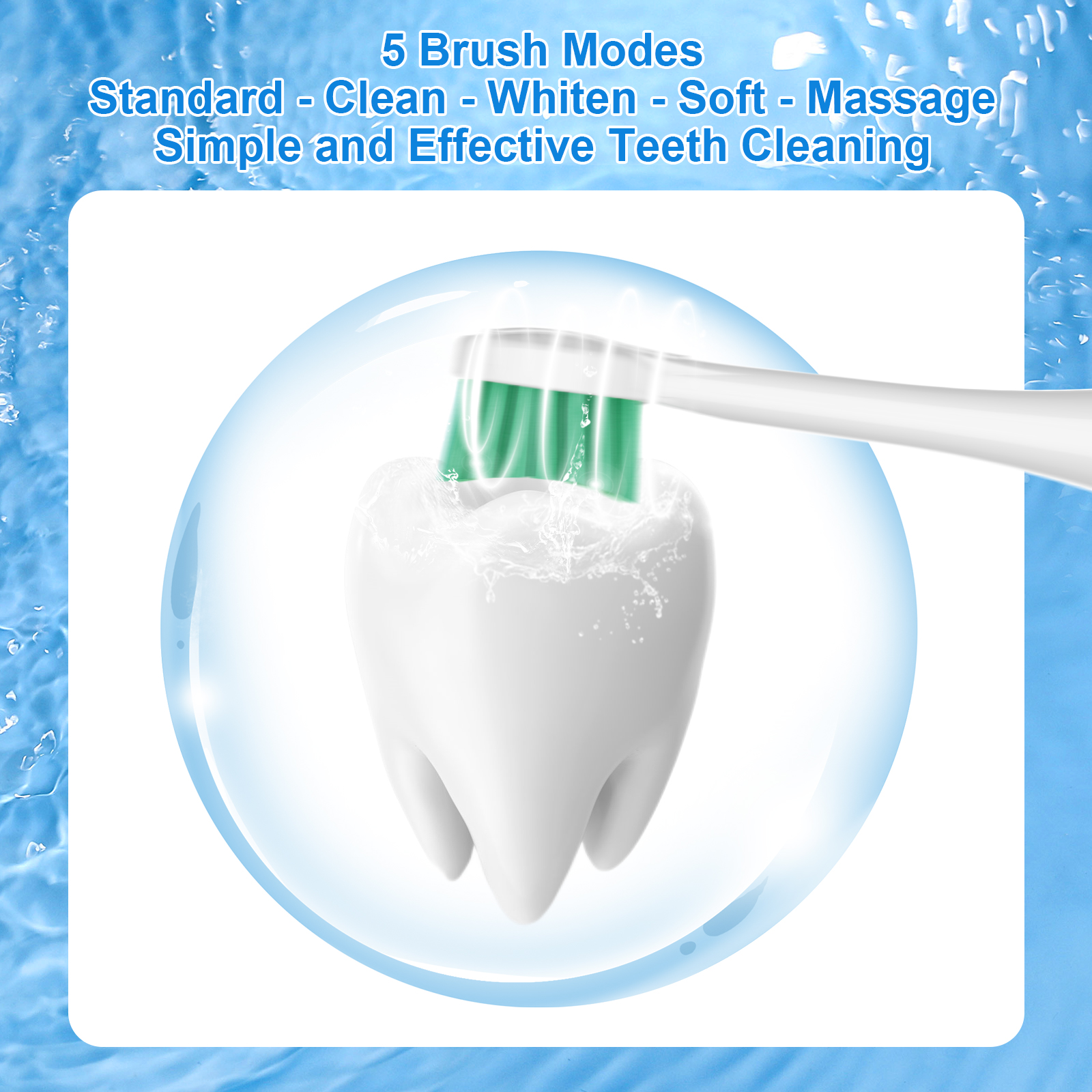 Hệ thống kép vận hành độc lập với 5 chế độ của tăm nước và 5 chế độ của bàn chải.