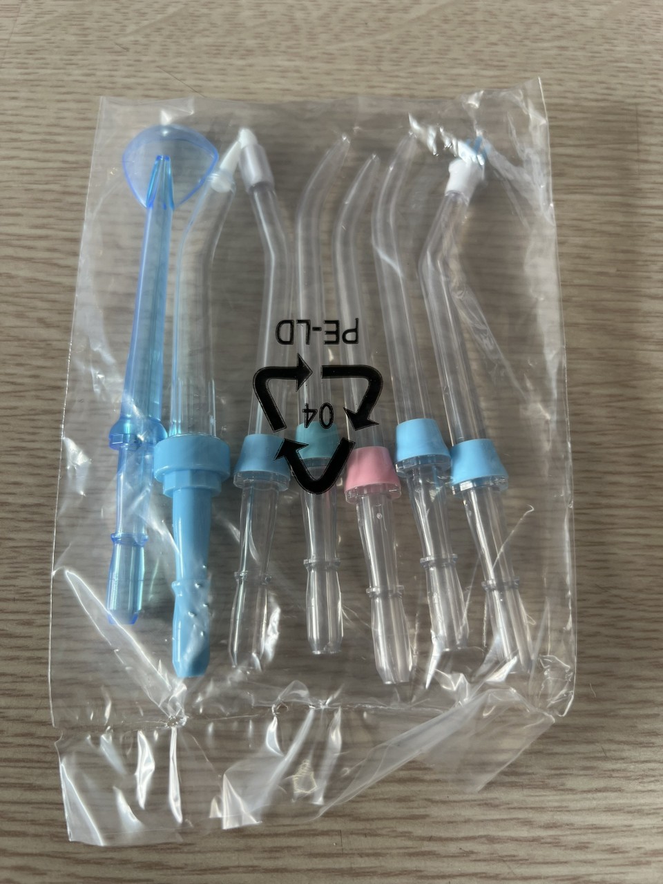 - Có 5 loại đầu phun ( 3 đầu phun tiêu chuẩn, 1 đầu phun lợi, 1 đầu làm sạch lưỡi, 1 đầu làm sạch mảng bám, 1 đầu chỉnh nha).