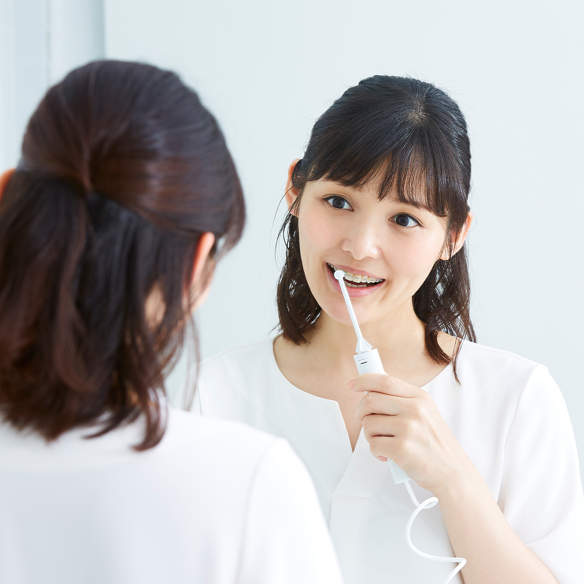 Máy tăm nước Panasonic EW1613W451- công nghệ siêu âm – 10 mức áp lực nước được tích hợp tia nước công nghệ sieeuaam giúp tăng cường khả năng làm sạch. Máy sẽ vệ sinh được nhiều mảnh vụn thức ăn ra khỏi răng và kẽ răng hơn, ngay cả với cùng một mức áp lực nước. Đồng thời, có thể thổi bay các mảng bám trong túi nha chu, và cũng có thể nhẹ nhàng kích thích nướu răng. Máy được trng bị một máy bơm để cấp nước có áp lục cao cùng với dòng nước chứa bọt khí mịn giúp nhẹ nhàng kích thích nướu với xung động 1.900 lần mỗi phút.