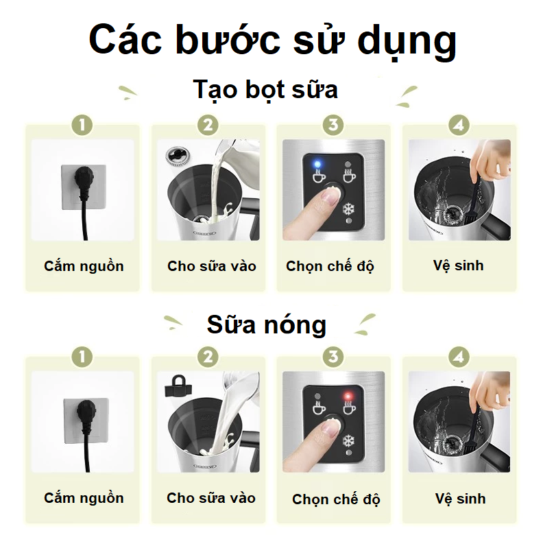 - Kiểm soát tốt nhiệt độ vì vậy rất thích hợp để tạo bọt và làm nóng các loại đồ uống được làm từ thực vật như: Đồ uống hạnh nhân; đồ uống đậu nành, đồ uống ngũ cốc, đồ uống từ gạo, đồ uống từ dừa.