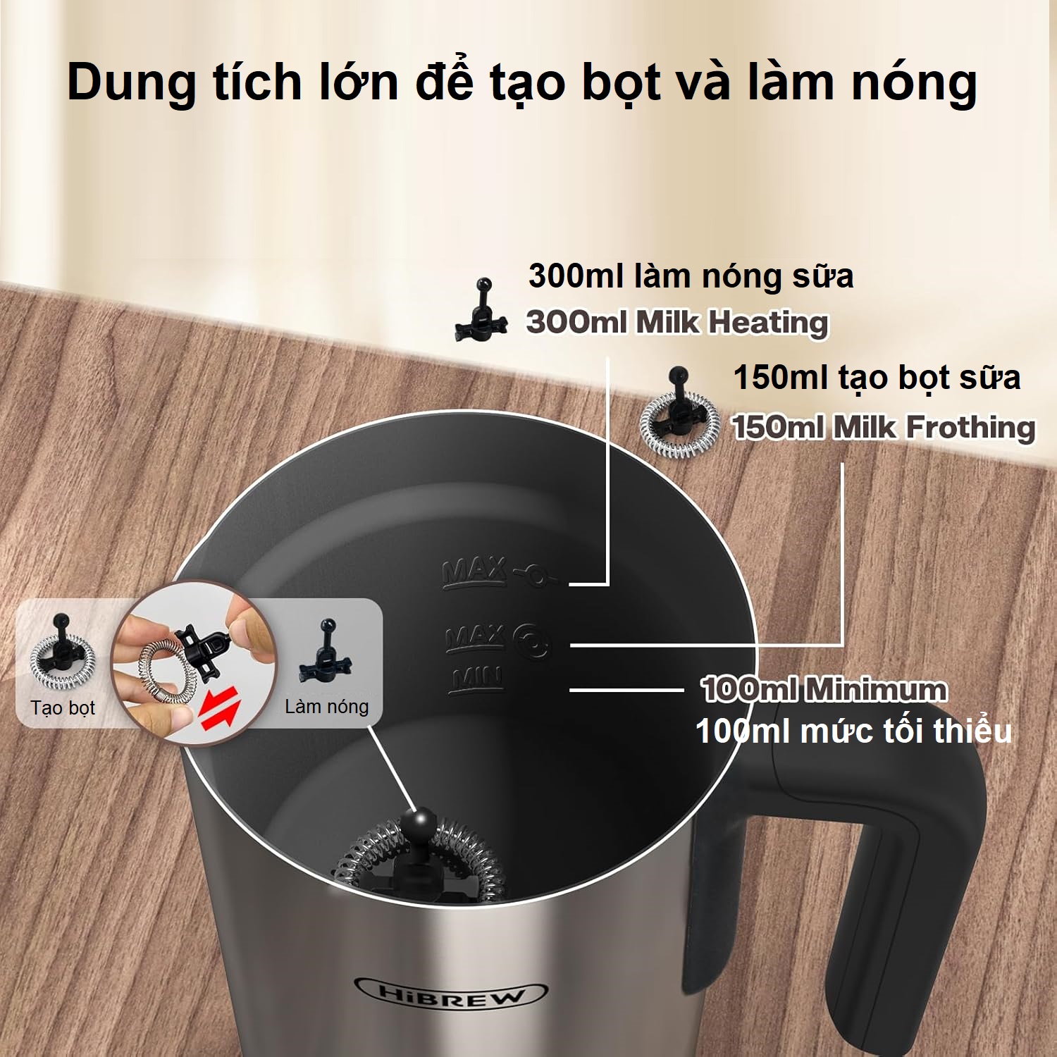 - Dung tích tạo bọt sữa: 150ml