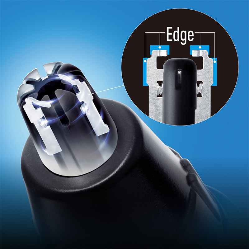 Lưỡi dao cắt bằng inox cho độ sắc bén tốt, độ mượt cao, cắt ngọt, đầu cắt có khung bảo vệ tránh làm trầy xước da. Sản phẩm chuyên dùng cho vùng mũi và tai.